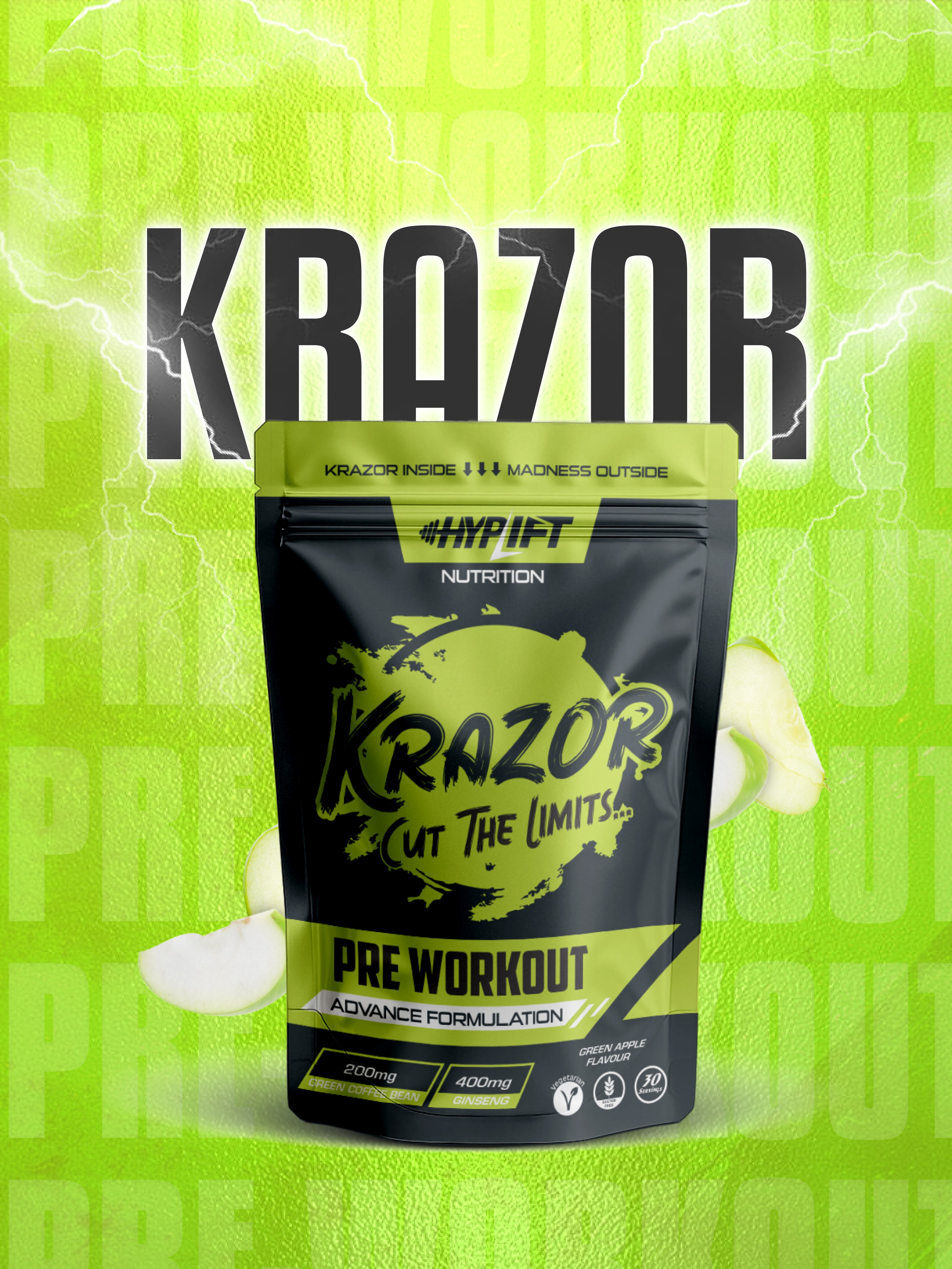 KRAZAOR is formulated using natural caffeine sources such as green coffee bean extract and ginseng, instead of synthetic caffeine, unlike conventional pre-workouts that rely on heavy stimulants, KRAZAOR delivers a smooth, controlled energy build-up without overwhelming your system. This means no jittery hit, no sudden spike, and no crash, just clean performance enhancement that feels natural and sustainable.